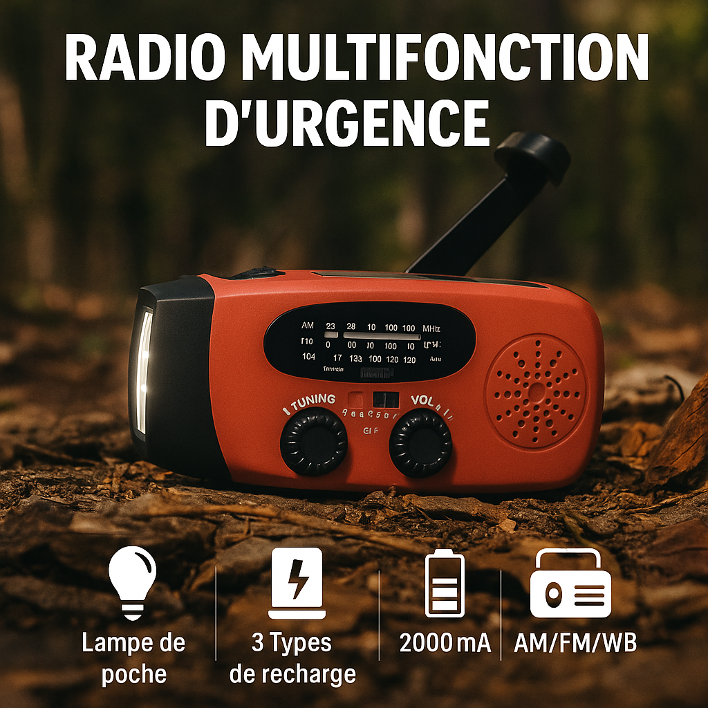 Compacte et autonome, cette radio-lampe est idéale en cas d’urgence ou en déplacement. Elle offre un éclairage LED longue durée, une radio multibande (AM/FM/WB) et une batterie de secours de 2000 mAh. Rechargeable par dynamo, solaire ou USB, elle garantit une autonomie fiable où que vous soyez.